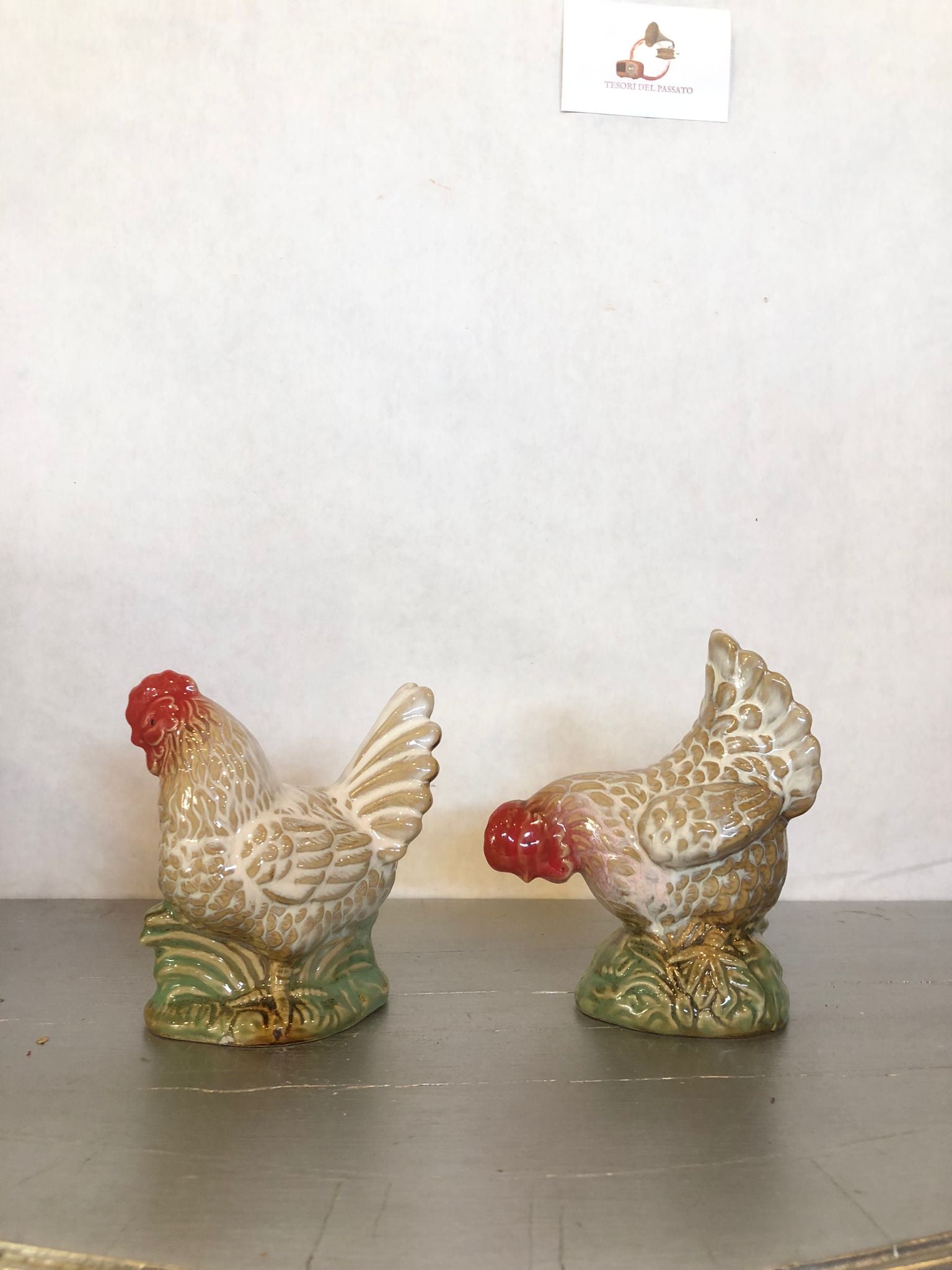 Rendi unica la tua casa con questa splendida coppia di galline in ceramica smaltata, realizzate con cura e dettagli dipinti a mano.
