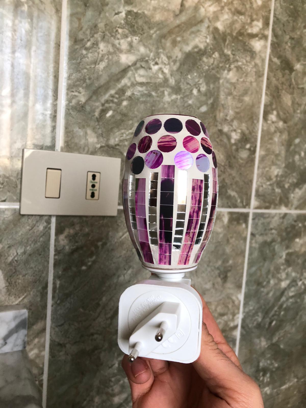 Lampada Notturna da Presa con Paralume Mosaico Rosso e Specchiato – Luce Notturna LED Decorativa Elegante