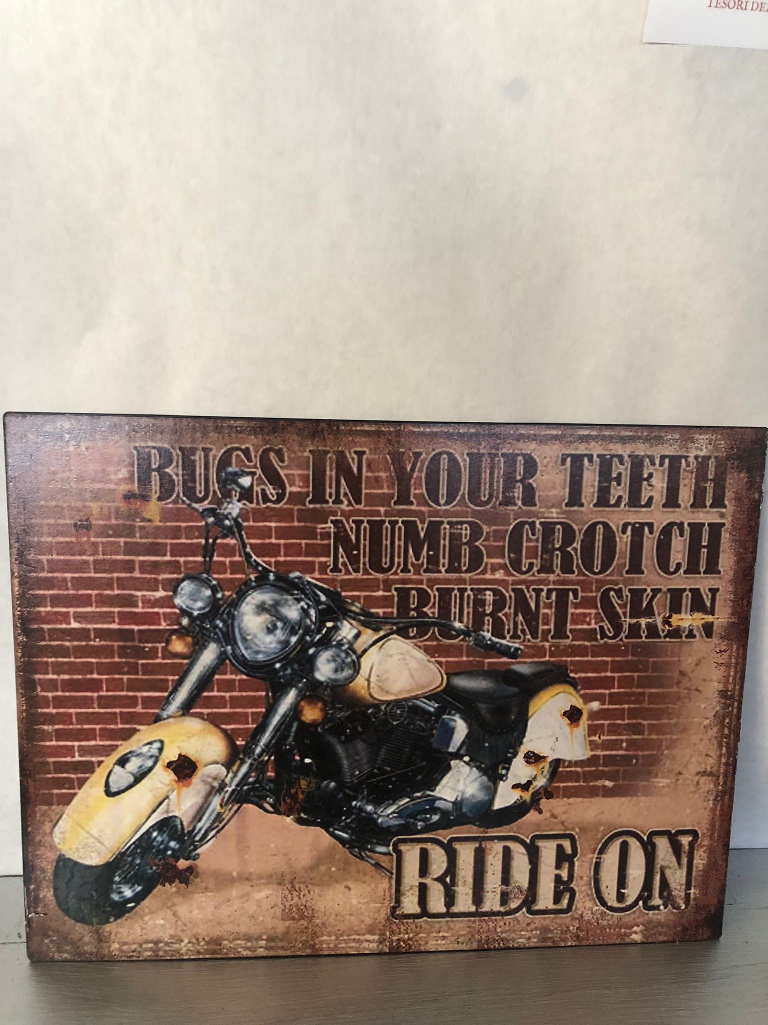 Targa Vintage in Metallo Moto Ride On – Insegna Retrò da Parete per Biker e Garage