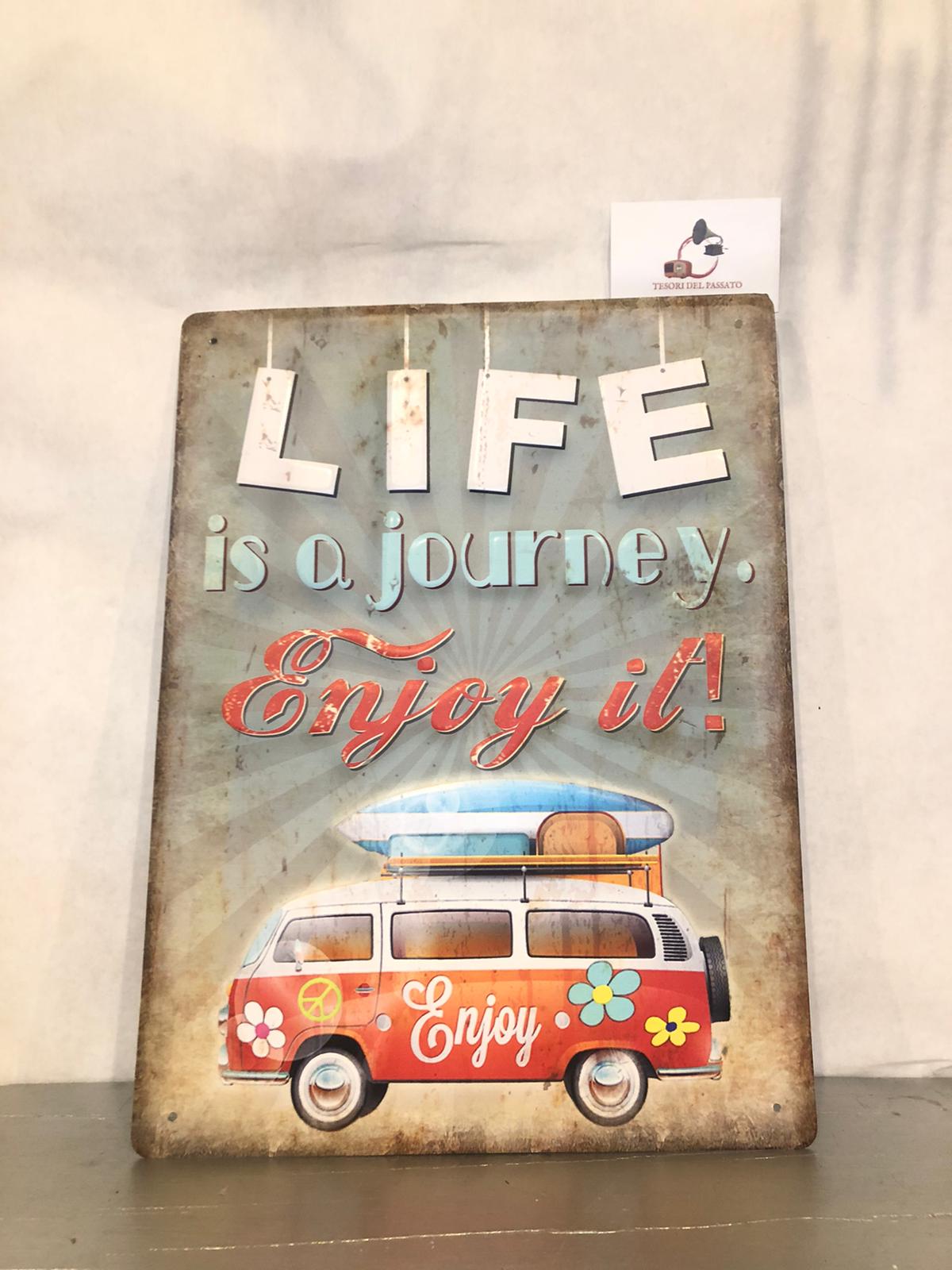 Targa Vintage Volkswagen Van – Insegna Metallo Retrò Hippie – Life is a Journey Enjoy It